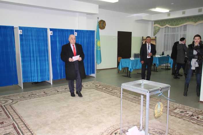 На часах еще не было 7 утра, когда Косарев пришел на избирательный участок для голосования. Нужно отметить, что член КНПК был в это утро не первым посетителем этого участка. Раньше него сюда пришел еще один бывший депутат прошлого созыва - Мухтар Тиникеев.