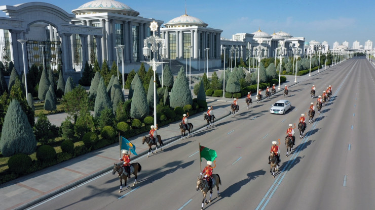 Переговорам на высшем уровне предшествовала официальная церемония встречи на площади Независимости. Начальник почетного караула отдал рапорт лидерам двух стран, были исполнены государственные гимны Казахстана и Туркменистана. Затем Касым-Жомарт Токаев и Гурбангулы Бердымухамедов обошли строй почетного караула и представили друг другу членов официальных делегаций.