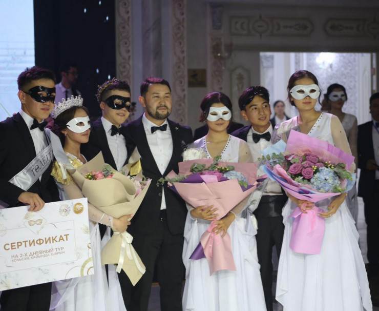 35 пар в течение двух месяцев соревновались в благих поступках. За это время они помогали многодетным семьям, ветеранам и проводили экологические акции в Талдыкоргане. Самые активные в этот вечер получили звание короля и королевы бала. Ими стали Сапар Султан и Молдир Алибекова.