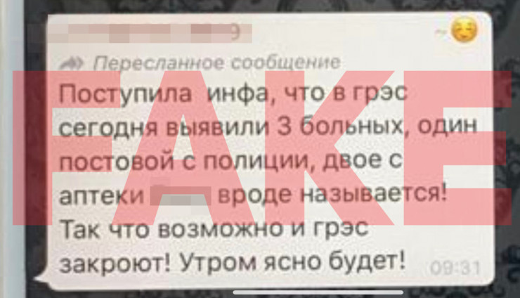 "Бүгін Грэсте үш науқас табылды деген ақпарат келді, оның бірі полицей, екеуі дәріхана қызметкері! Сондықтан Грэм те жабылуы мүмкін. Ертеңгісін белгілі болады", - делінген хабарламада.