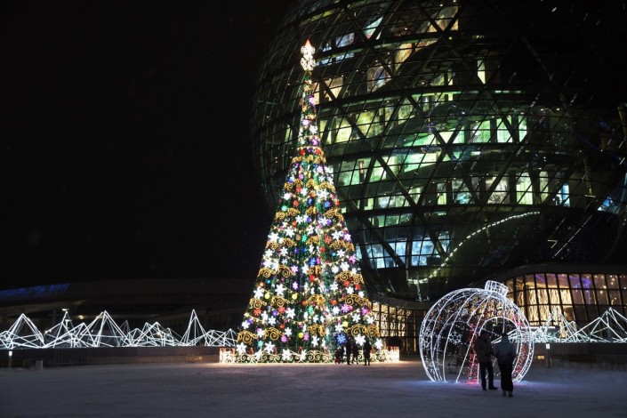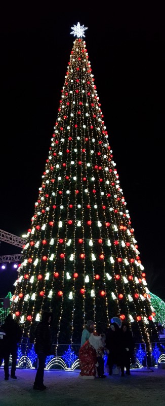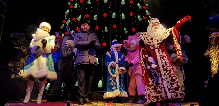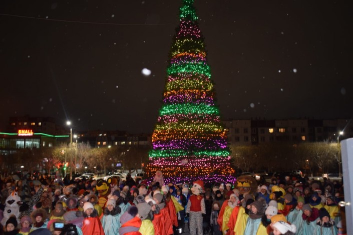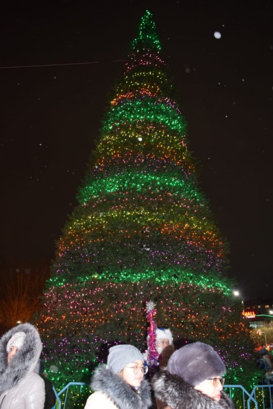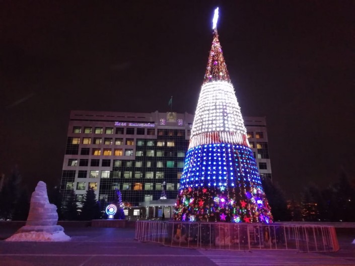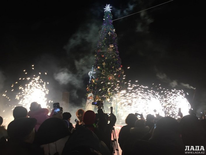 Главная елка высотой 24 метра установлена на площади Первого Президента. Церемония ее зажжения состоялась 21 декабря. Несмотря на 20-градусный мороз, горожане вместе с акимом города Муратом Мукаевым пустились в хоровод вокруг зеленой красавицы.