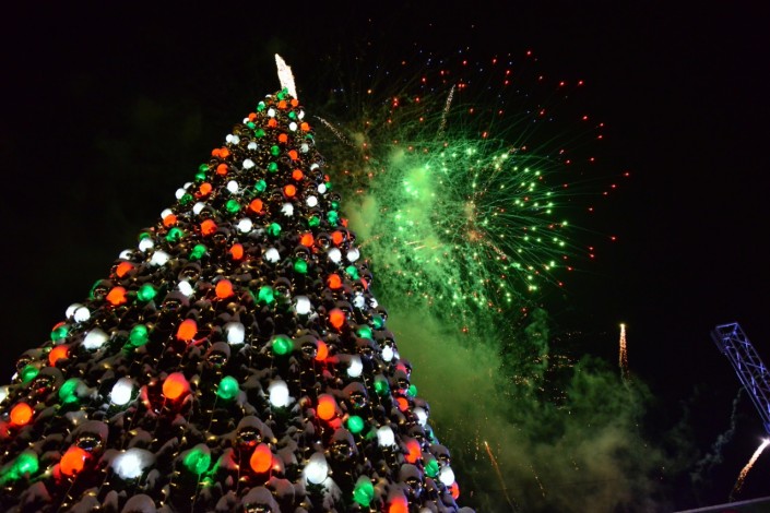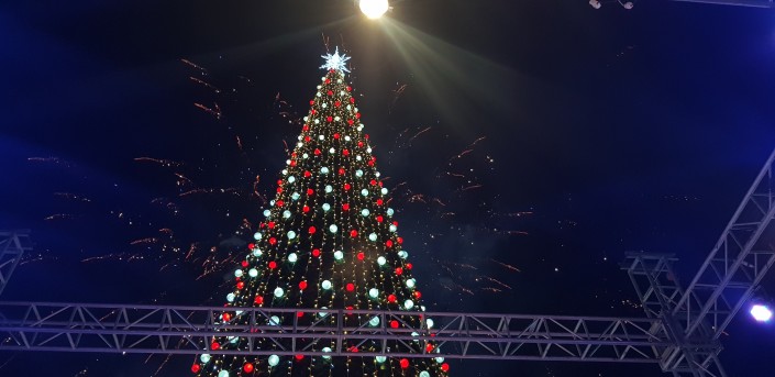 Главную елку страны зажгли в столице 18 декабря. Елка расположилась на территории выставки EXPO, так же как и в прошлом году. Ее высота составила 25 метров, она искусственная. Для оформления новогодней красавицы использовано более двухсот снежинок, 1200 разноцветных шаров и 4000 метров гирлянд.