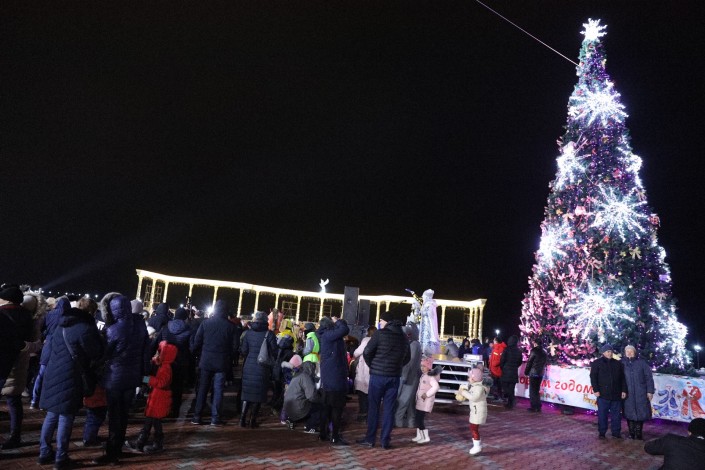 Церемония зажжения елки в Петропавловске. По данным акимата, в этом году из бюджета была выделена только треть от запланированных средств.