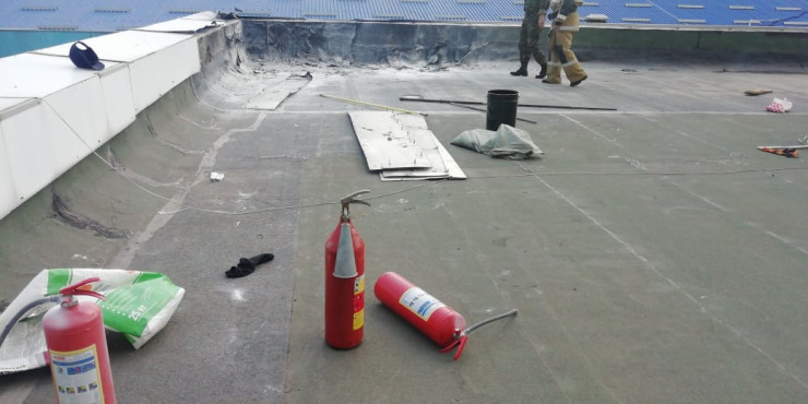 "В 11.03 в службу пожаротушения поступило сообщение о пожаре по проспекту Республики, 43. По прибытии на место вызова уже через 6 минут было установлено, что на кровле пристроенного к 10-этажному жилому дому детского сада "Мерей" проводили кровельные работы, произошло возгорание горючего основания (рубероид)", - говорится в сообщении КЧС.