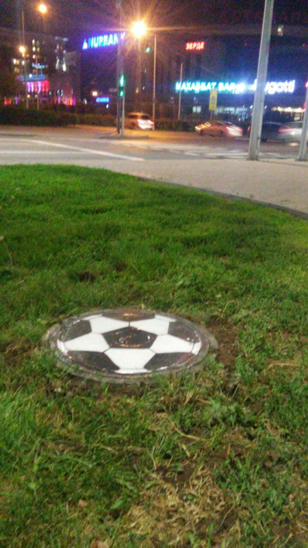 "Кроме того, креативные крышки гармонично вписываются в окружающий ландшафт. Всего по городу раскрасили 55 люков. Дизайн их выполнен в виде спортивных мячей, и глядя на них хочется жить на порядок позитивнее", - считают в "Астана су арнасы".