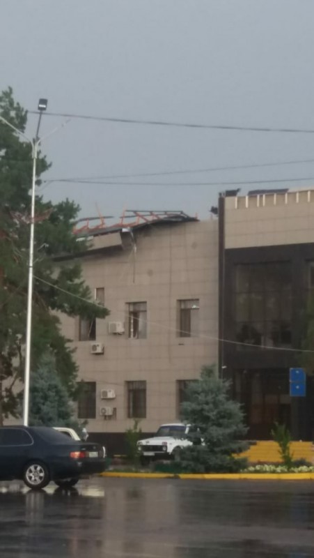"11 июля в 19.00 в Жамбылской области, в Меркенском районе, селе Мерке порывами ветра до 19 метров в секунду частично сорвана кровля двухэтажного здания ГУ "Аппарат районного акимата" на площади 120 квадратных метров", - сообщили в пресс-службе КЧС.
