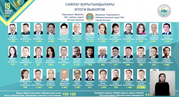 - Округ №1 (Астана) - Даулет Турлыханов (кандидат от Amanat) - 71 698 голосов;