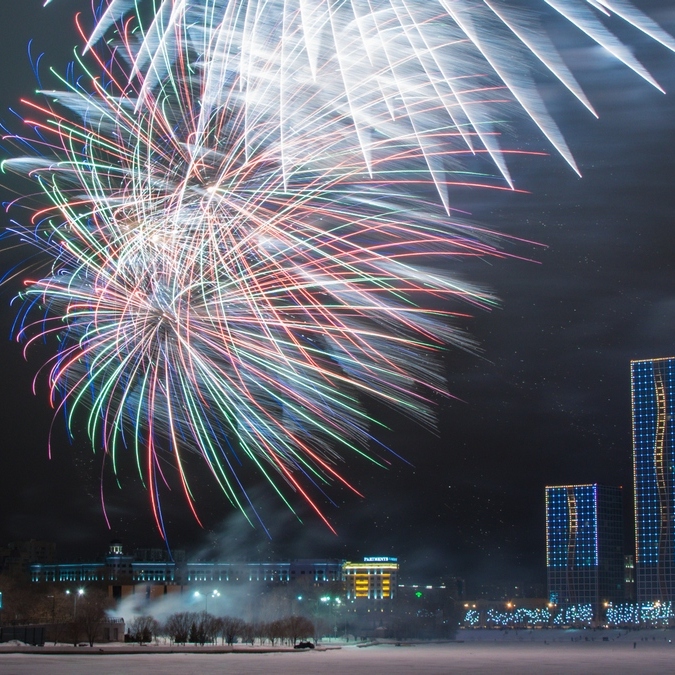 В ночь с 31 декабря на 1 января жители и гости Нур-Султана смогут увидеть новогодний фейерверк, который по традиции удобнее всего наблюдать с набережной реки Есиль, с территории Ботанического сада, а также на пересечении проспекта Абылай хана и улицы Пушкина.