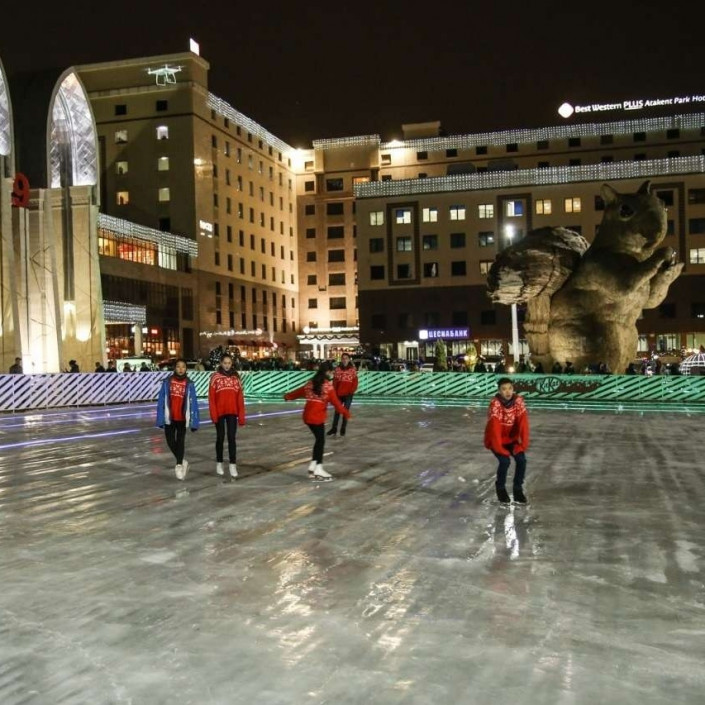 Бесплатный круглосуточный каток был залит и в Наурызбайском районе, перед зданием акимата. Его площадь составляет 2,5 тысячи квадратных метров.