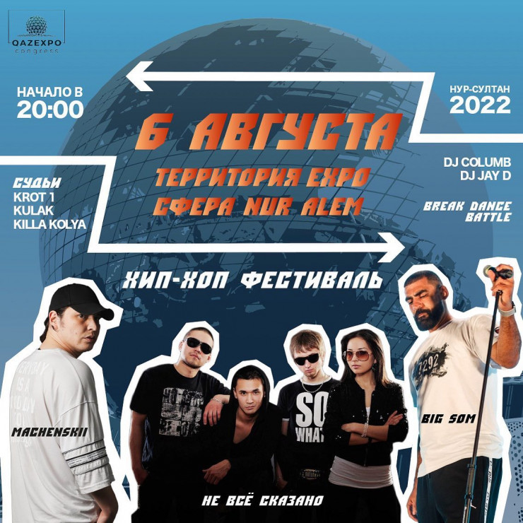 В эту субботу на территории EXPO пройдет хип-хоп-фестиваль. Гости смогут погрузиться в атмосферу уличной культуры. Вас ждут зажигательные DJ-сеты, рэп-батл и соревнования по брейк-дансу среди лучших хип-хоп-танцоров столицы. На сцене выступят группы "Не все сказано", Machenskii, Bigsom. Музыкальные сеты исполнят диджей Columb и диджей Jay D. Вход бесплатный.