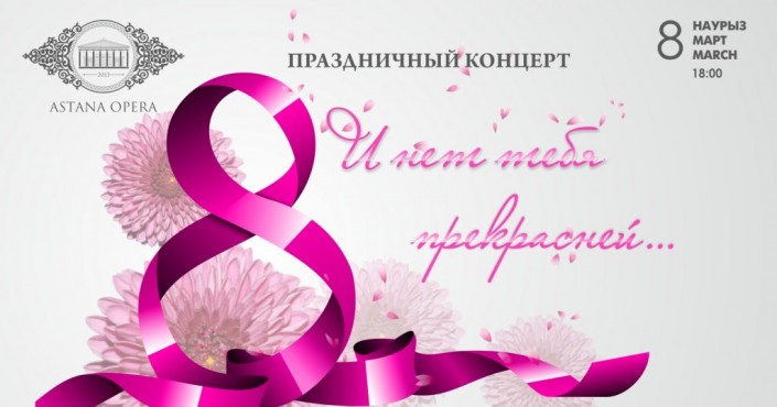 Самые романтические композиции зарубежных и казахстанских мэтров станут подарком прекрасному полу на праздничном концерте "И нет тебя прекрасней" в большом зале театра "Астана Опера". В программе - арии и дуэты из опер Пуччини, Верди, Чайковского, Массне, а также "Камар-сулу" Рахмадиева, "Кыз Жибек" Брусиловского в музыкальной редакции Мухитдинова. Прозвучат народная песня "Кусни Корлан", "Айттым салем, Каламкас" Абая и другие песни о любви и прекрасных женщинах. В концерте участвуют симфонический оркестр, хор и детский хор "Астана Опера".
