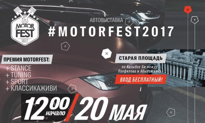На площади перед КБТУ пройдет автовыставка Motor Fest 2017. По заверениям организаторов, гостей ждут лучшие тюнинг-проекты, автомобильная экзотика, маслкары и легенды классики, множество развлечений и огромное количество призов и подарков. Особое внимание уделяется премии MotorFest, в рамках которой владельцы лучших авто поборются за солидные денежные призы и подарки.