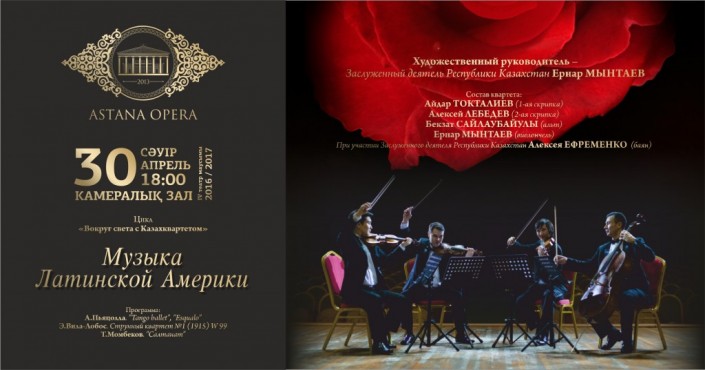 Концерт известного коллектива - Государственного струнного квартета имени Газизы Жубановой - пройдет в камерном зале "Астана Опера" в рамках цикла "Вокруг света с Казахквартетом". На этот раз музыканты представят музыку композиторов стран Латинской Америки. Квартет отличает высокое исполнительское мастерство, филигранная техника игры, чистое, слаженное звучание, которого добиваются не только благодаря таланту, но и бесконечной кропотливой работой.