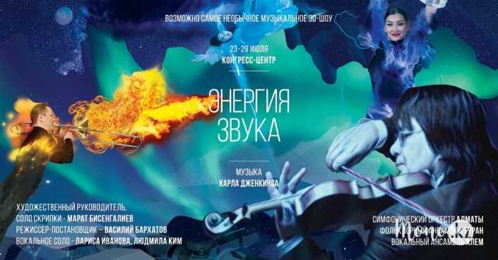 Масштабное музыкальное шоу "Энергия звука" казахстанского скрипача Марата Бисенгалиева и британского композитора Карла Дженкинса является знаковым мероприятием EXPO-2017 и одним из самых запоминающихся симбиозов современности. Виртуозный казахстанский скрипач, легендарный британский композитор, талантливые постановщики России и Великобритании создадут настоящую звуковую и визуальную феерию благодаря новым технологиям и современному 3D-оборудованию.