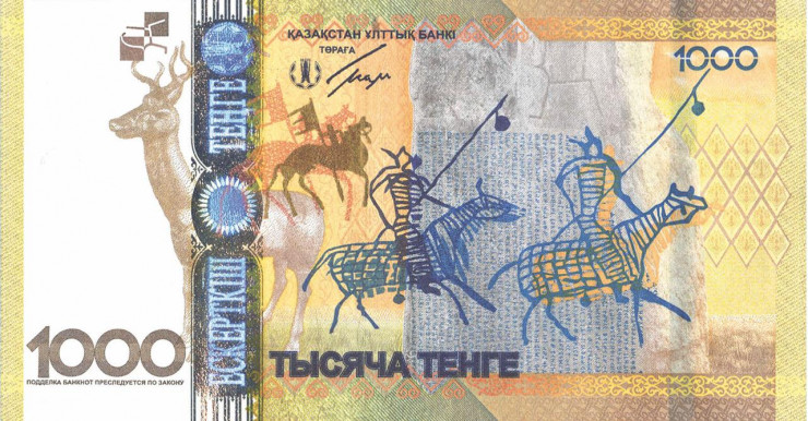 Банкнота номиналом 1000 тенге, посвященная памятнику тюркской письменности "Күлтегін", была введена в оборот в 2013 году.