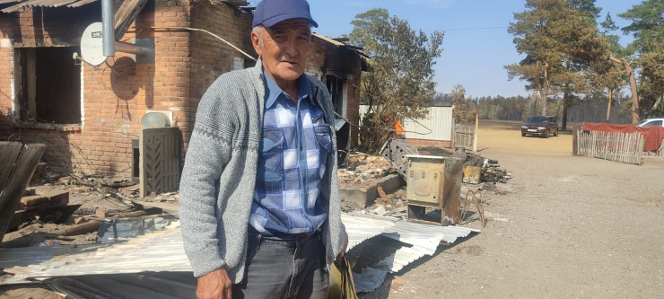 Семья Рахметовых из Аманкарагая живет пока в соседнем заброшенном доме, хозяин которого вошел в положение погорельцев и разрешил им там временно остановиться. Странно, что ветхий домишко уцелел, ведь между домом Рахметовых и ним всего пара метров, но огонь, пришедший из леса, обошел его стороной. Главу семьи мы встретили с пакетом и обувью в руках, Бисембай Рахметов работает на железной дороге, ему выдали новую форму, прежняя сгорела вместе с домом. Мужчина, вспоминая, что им пришлось пережить, говорит, что все наживное, но вот животных очень жаль.