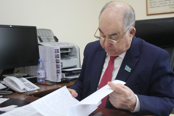 Сегодня традиционное пленарное заседание Мажилиса перенесли на 9 утра. Поэтому депутат занимается перечитыванием депутатского запроса и выступления, которое он будет озвучивать в ходе заседания.