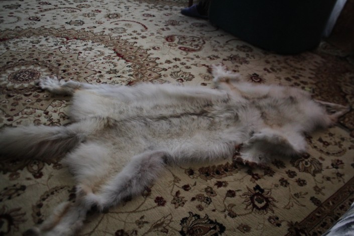 На ковре в гостиной волчья шкура.