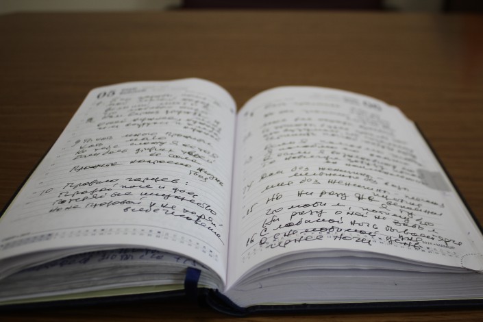 Страницы ежедневника исписаны заметками с рабочих заседаний, на других листах написаны стихи.