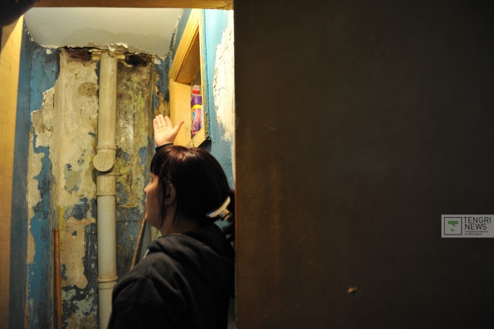 "Потом акимат дал приказ снять мансарду. Начали ее снимать, и вообще нас полностью затопило. Они нам дали бумагу, что, мол, мы вам восстановим все, но ничего не восстановили. А еще нам цементом залили отдушину, теперь она у нас не функционирует. Теперь к нам испарения с первых этажей поднимаются, кто-то покурит - у нас даже дым стоит и дети задыхаются. У меня ребенок с больным сердцем и ревматизмом ног, десять лет девочке", - говорит хозяйка квартиры.
