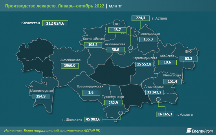 За девять месяцев 2022 года в Казахстан импортировали лекарств на миллиард долларов. В натуральном выражении импорт вырос на 17,3 процента, в денежном – на 25,8 процента.