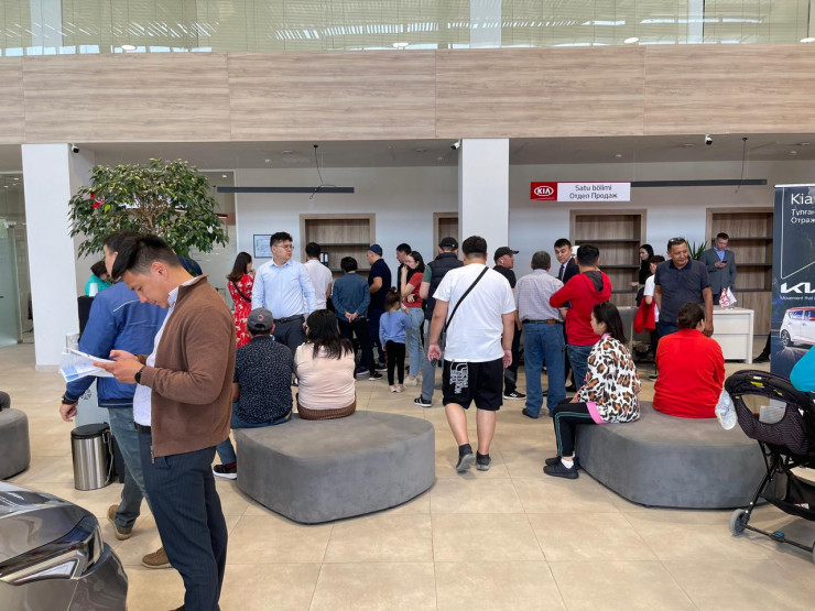 Горожане с самого утра собираются в автосалонах. В салонах на проспекте Туран очереди продолжаются на улице. Многие возмущаются неясными условиями программы.