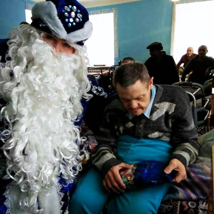 В нем Виталий живет больше полугода. Сначала он был немного напуган, но быстро привык к здешним правилам и людям. Видно, что жизнью большой ребенок доволен: у него есть любимые игрушки, а на Новый год подарок ему принес сам Дед Мороз. Тех, кто за ним ухаживает, Виталий называет мамами и папами. Читать он не умеет, зато блестяще подражает собравшимся в библиотеке: сосредоточенно смотрит в книгу, слюнявит палец, перелистывает страницы, бормочет что-то под нос и хмурит брови. А еще любит петь и танцевать: маленькие концерты с восторгом встречают и сотрудники, и жители центра.