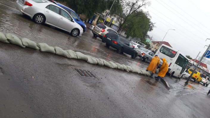 В Ауэзовском районе по улице Цветочная на подтопленной территории работниками подрядных организаций акимата Алматы, сотрудниками ТОО "Тазалык Сити" были проложены мешкотары в количестве 40 штук, на данный момент подтопление ликвидировано.
