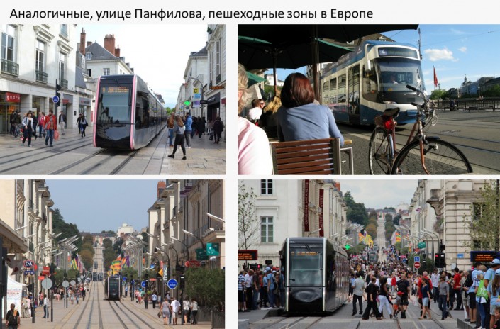 По сообщению управления, коридор ЛРТ проходит по западной части, где на данный момент проложена автомобильная дорога, то есть пешеходную часть улицы затронет минимально. Аналогичные улице Панфилова пешеходно-прогулочные зоны с линией ЛРТ в Европе имеются в Барселоне, Париже, Амстердаме.