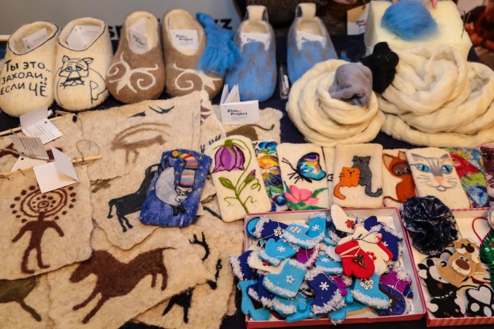 На выставке были представлены различные изделия, произведенные начинающими предпринимателями. Прошло и несколько мастер-классов: по макияжу, "Пешком по родным просторам", по валянию войлока.