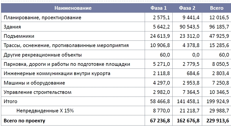 В качестве инвесторов были приглашены арабские бизнесмены. Сейчас с ними ведутся переговоры, которые находятся на завершающей стадии. Также подписан меморандум с фондом недвижимости "Самрук-Казына". Начало строительства курорта "Каскасу" планируется в 2015 году. "Осуществление всего проекта займет около четырех лет. Однако мы собираемся разбить весь проект на два этапа. Запустить несколько канатных дорог, поставить одну гостиницу и параллельно достраивать", - рассказал собеседник.
