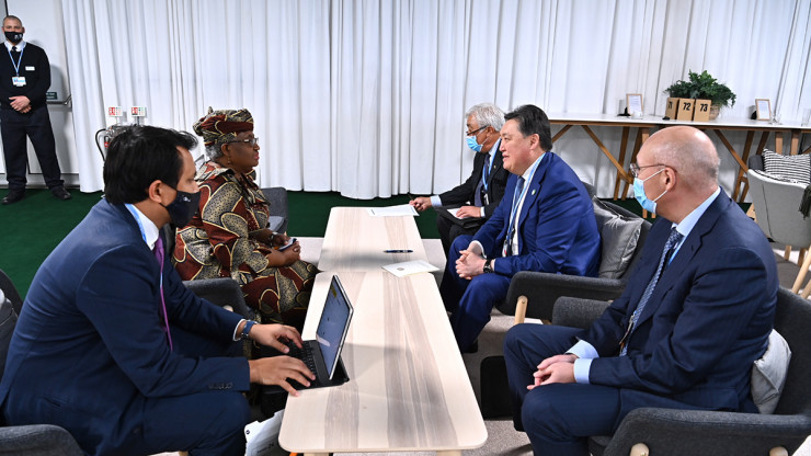 Кроме того, в контексте подготовки Казахстана к председательству на 12-й министерской конференции Всемирной торговой организации премьер-министр Аскар Мамин встретился с генеральным директором ВТО Нгози Оконджо-Ивеалой и государственным министром внешней торговли Великобритании Энн-Мари Тревельян.