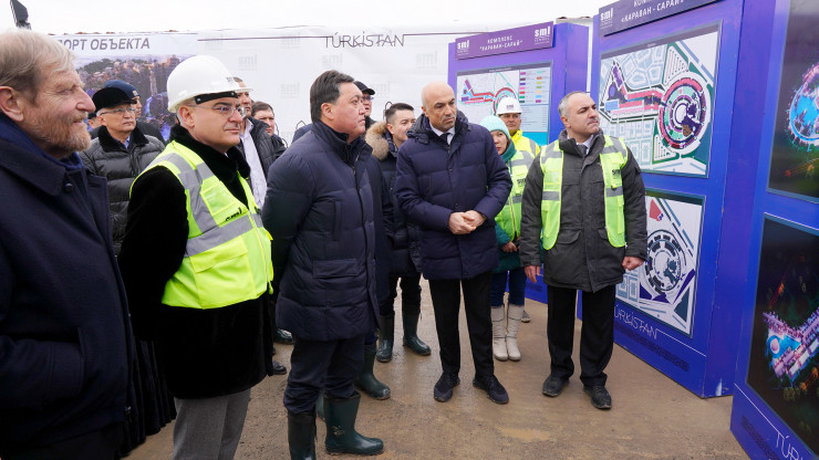 Аскар Мамин посетил строительные площадки Конгресс-холла, Дворца школьников, офисных зданий акимата, спортивного комплекса с бассейном, стадиона на 7 тысяч мест, драматического театра, областной научно-универсальной библиотеки, городского парка с аттракционами, центра "Ұлы дала Елі" и Музея Яссауи, а также проинспектировал ход реконструкции зданий Национального центра ремесленников Великого шелкового пути и Визит-центра.