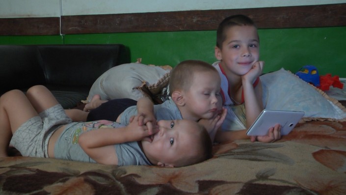 Вероника Симоненко вместе с тремя детьми снимает времянку. Место, а точнее одна комната, изначально было оборудовано под зал для компьютерных игр. Сейчас с мужем женщина в разводе. У нее нет работы, а на руках трое детей 7 и 2,5 лет. Раньше Вероника работала учителем, у нее стаж 11 лет. Но сейчас она не может выйти на работу, ей не с кем оставить детей - ее малышам-близнецам Коле и Леше - по два с половиной года.