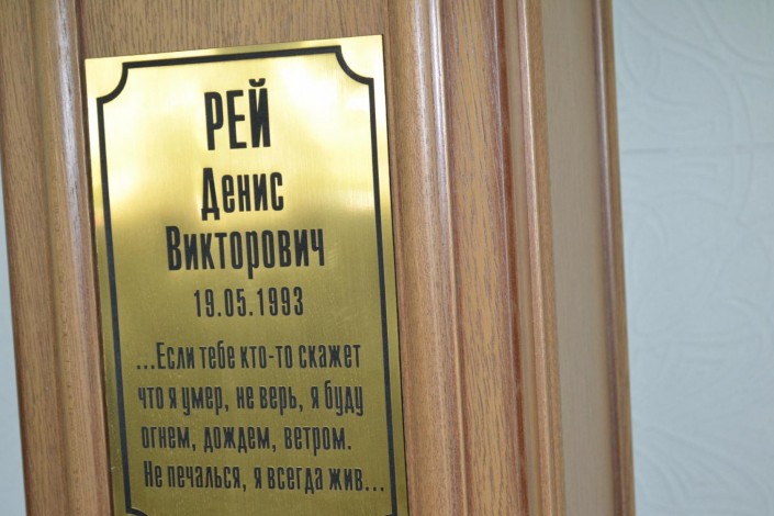 Портретную скульптура пограничника из гипса установили в фойе агротехнического колледжа, где учился Денис Рей. На постаменте кроме инициалов выгравированы год рождения и символичная надпись: "…Если тебе кто-то скажет, что я умер, не верь. Я буду огнем, дождем, ветром. Не печалься, я всегда жив…"