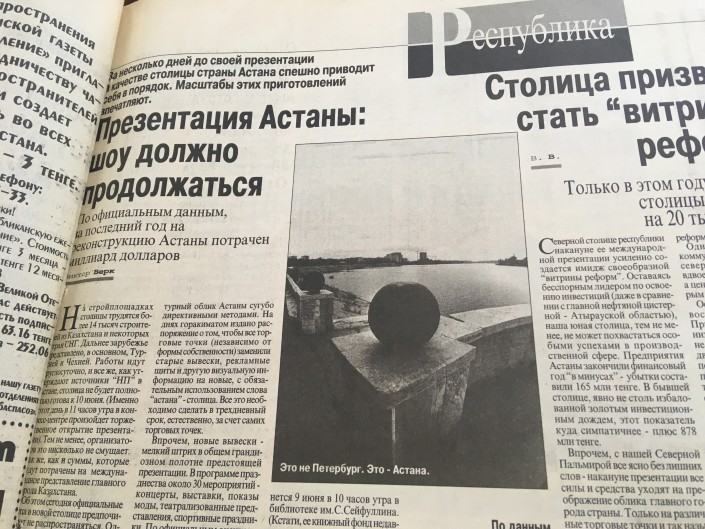 Шутили СМИ в то время и на тему благоустройства Астаны. В газете "Новое поколение" высказались о миллиарде долларов, потраченном на реконструкцию города, сфотографировав набережную и подписав: "Это не Петербург. Это - Астана".