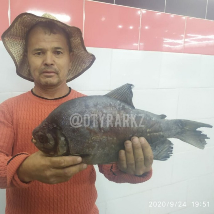 "Рыба большая, размером в пятилитровую баклажку, похожа чем-то на леща. Жабры посмотрел - красные. Открыл рот, а там зубы человеческие, как у пятилетнего ребенка. Меня аж немного в дрожь бросило", - рассказал Женис Узденбаев.