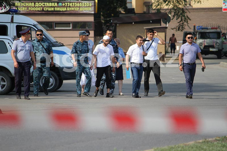 Утром 9 августа около 10:00 следователи прибыли на территорию кафе "Рахат-лукум", которое расположено на улице Исатая-Махамбета. Именно здесь несколько дней назад убили Мухангалиева. Следственная зона была оцеплена сигнальной лентой, а по периметру дежурили сотрудники полиции. На следственный эксперимент чуть позже привезли главного подозреваемого в совершении преступления. Это 31-летний Руслан Кожантаев.