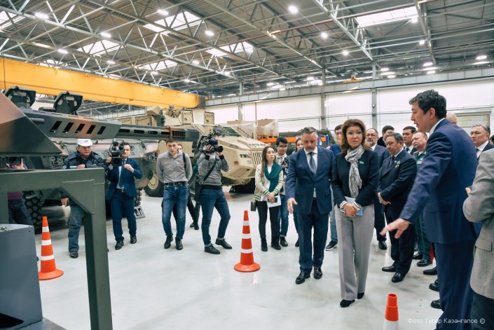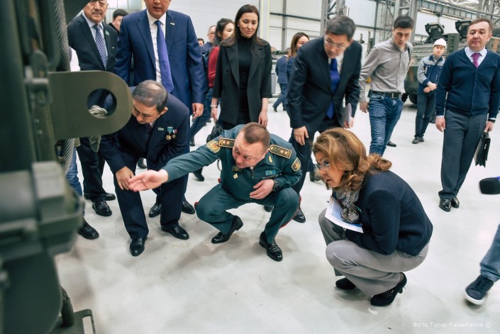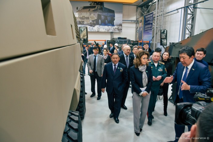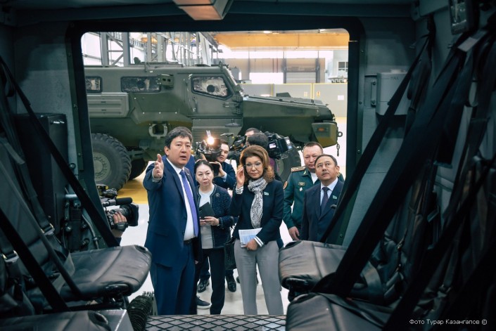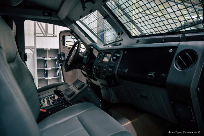 "Завод производит машины по технологии MRAP, которые способны выдержать взрыв под днищем силой до 10 килограммов в тротиловом эквиваленте, обладающие высокой баллистической защитой и готовые отражать атаки из засад", - начал Ербол Салимов.