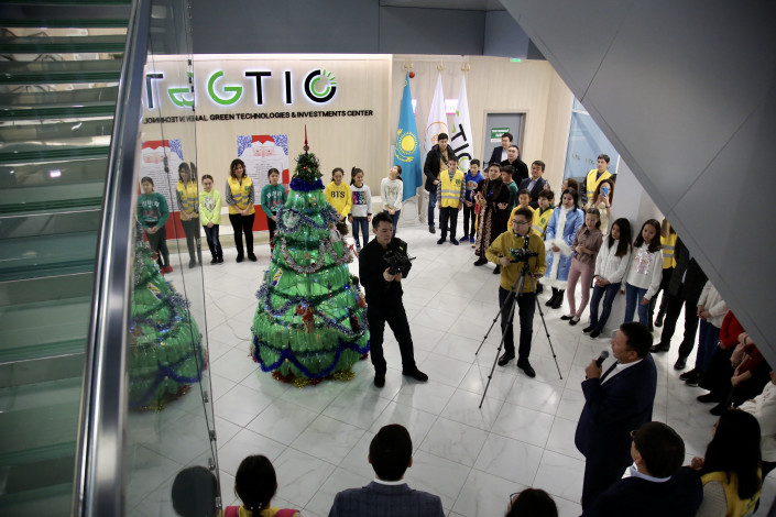 "Мне хочется поблагодарить всех участников этого проекта и поздравить с наступающим праздником. Эта красивая эко-елка сделана руками детей. Вы можете видеть на ней игрушки, которые также были сконструированы из вторичных материалов. Мы не хотим использовать живые елки. Мы, как экологи, выступаем за то, чтобы в стране меньше вырубалось деревьев, а больше было посадок. И если по стране будут появляться такие вот эко-елки, то это здорово отразится на нашей с вами природе", - заявил вице-министр экологии Примкулов.