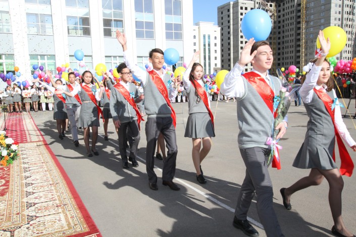 На торжественной линейке в столичной гимназии №75 глава МОН обратился, в первую очередь, к выпускникам школ. "Вы выходите в новый мир, мир знаний. Это будет совсем другой мир - я думаю, на первом курсе университета вы это почувствуете. Все, что я вам хочу пожелать, - вы закончили прекрасную школу, получили прекрасные знания. Желаю вам успехов на ЕНТ, желаю поступить в лучшие вузы страны, за рубежом. Желаю вам получить прекрасные профессии, очень интересные. Чтобы вы были у нас великими учеными, великими писателями, великими инженерами", - сказал Сагадиев.