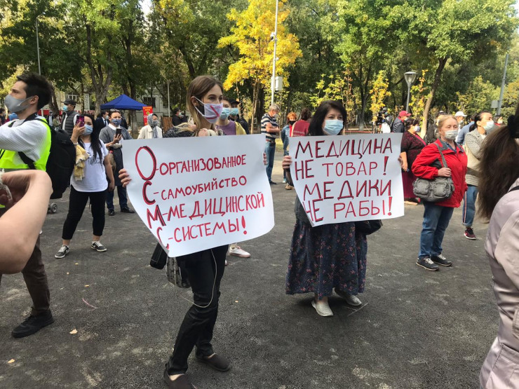 В Алматы начался согласованный митинг против нового Кодекса о здоровье народа Казахстана, передает корреспондент Tengrinews.kz.
