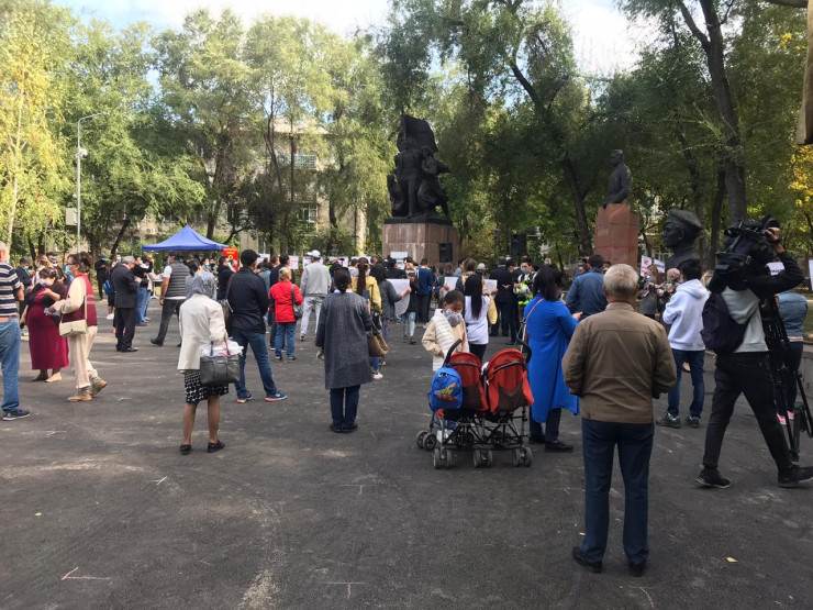 Мирный митинг начался в 15.00. К этому часу в сквере за кинотеатром "Сары Арка" собрались десятки алматинцев.