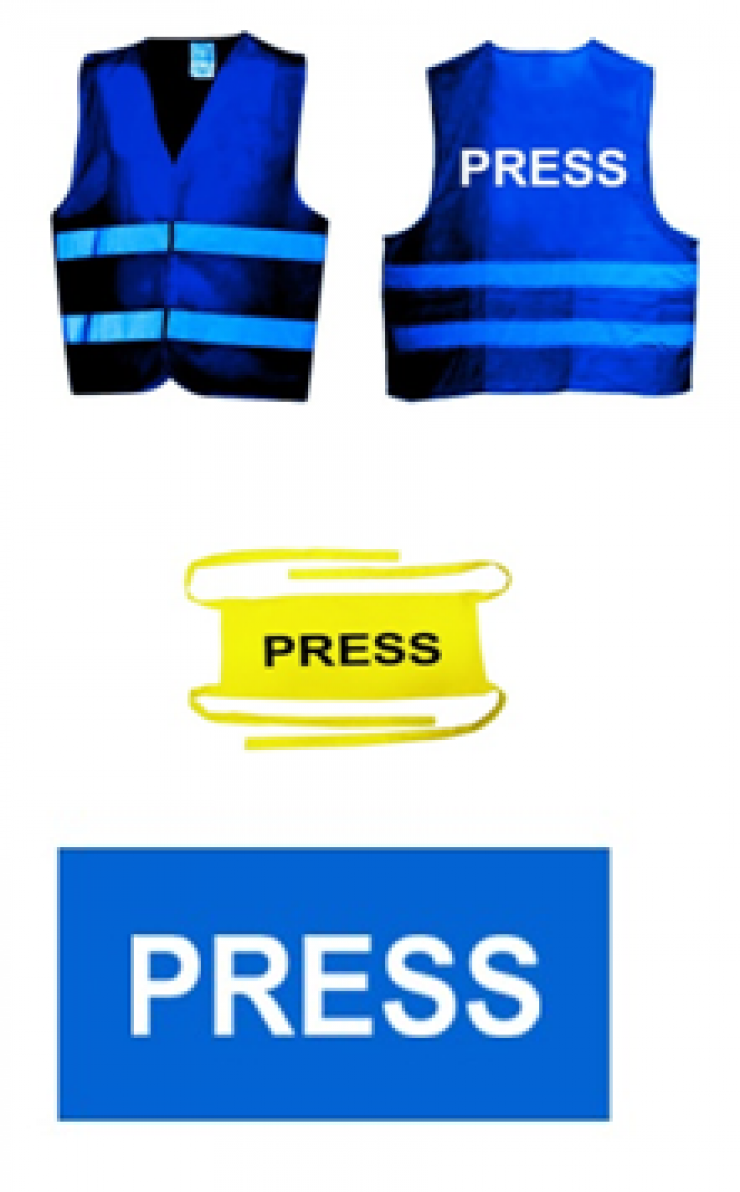 - нарукавные повязки ярко-желтого цвета с черной надписью PRESS на латинице;