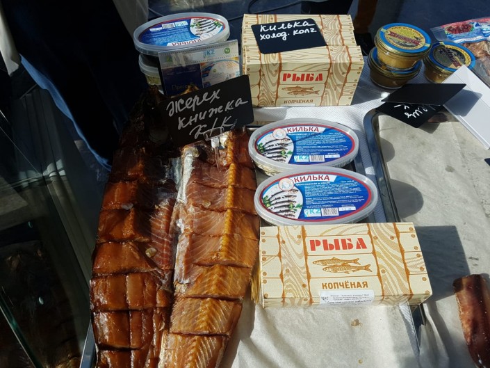 Здесь предлагали отведать рыбу, молоко, мясную продукцию, ягоды и овощи. "Лучше журналистам показать. Я-то все это видел", - сказал министр.