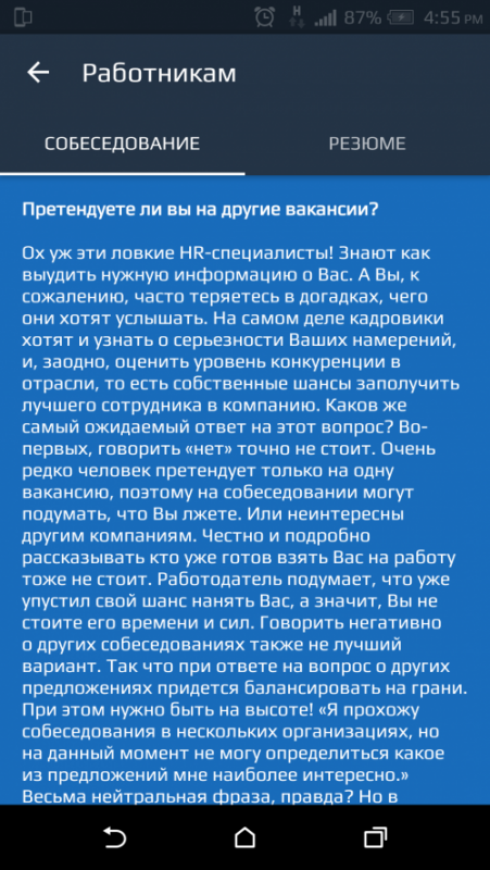 Кроме того, как отмечают разработчики мобильного приложения, пользователи смогут узнать, как правильно составить резюме или как вести себя во время собеседования. Приложение уже доступно в Google Play и App Store