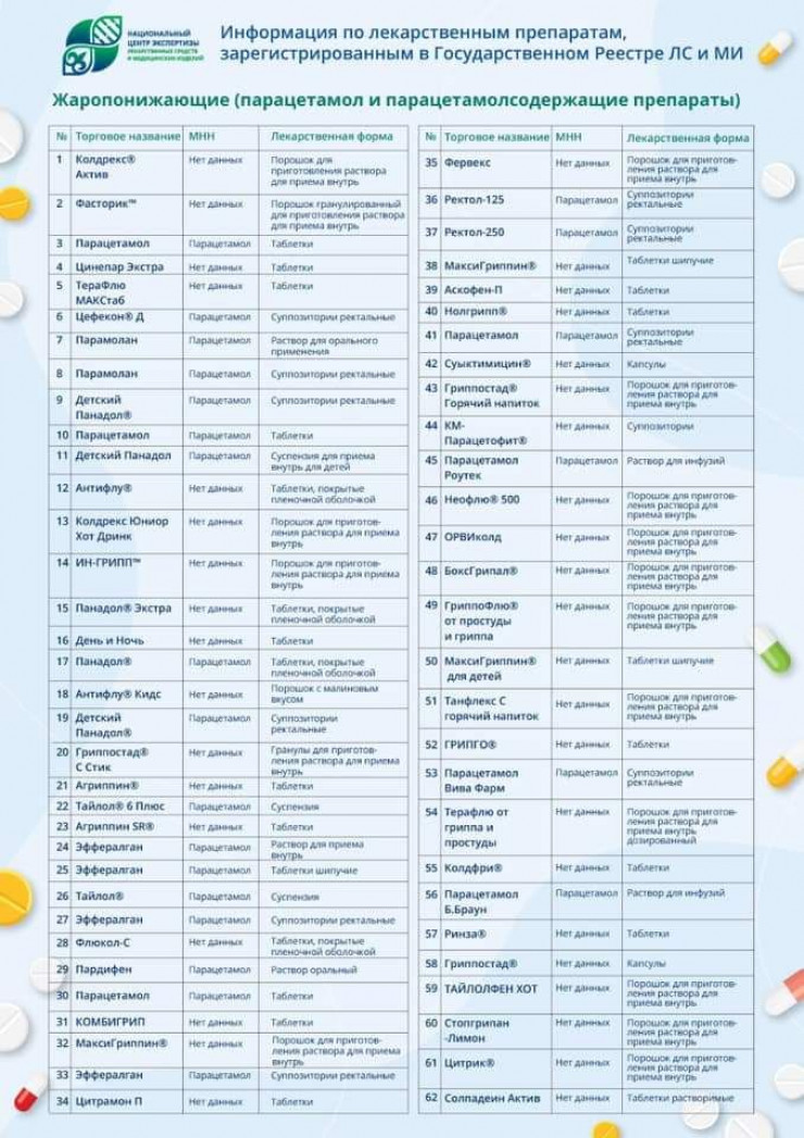 Список лекарств с содержанием парацетамола опубликован в Telegram-канале МВК. В списке жаропонижающих средств значатся: