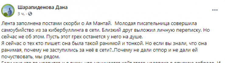 Знакомые и коллеги Аягуль Мантай в Сети пишут, что на девушку обрушилась травля в соцсетях.