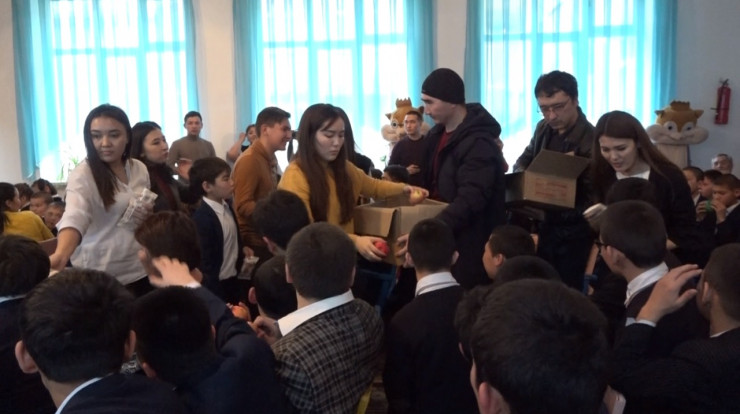 Молодые волонтеры Туркестана привезли детям праздник