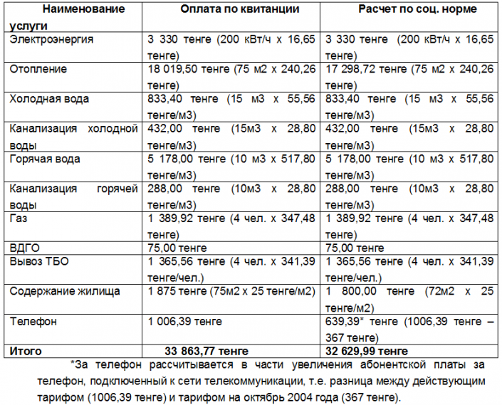Квартира общей площадью 75 квадратных метров. Социальная норма площади жилья при назначении жилищной помощи на одного человека - 18 квадратных метров, следовательно, на четырех человек - 72 квадратных метра. 10 процентов от совокупного дохода составляют 15 000 тенге.
